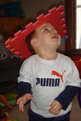 Colton, where is your ear? We are working on body parts....so far his ear is the only one he always gets right. :)
